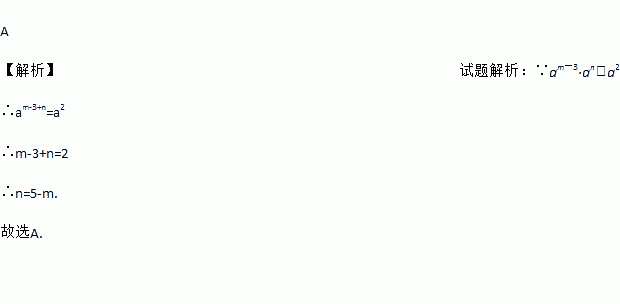 A 【解析】试题解析:∵am-3·an=a2 ∴am-3+n=a2 ∴m-3+n=2 ∴n=5-m. 故选A.