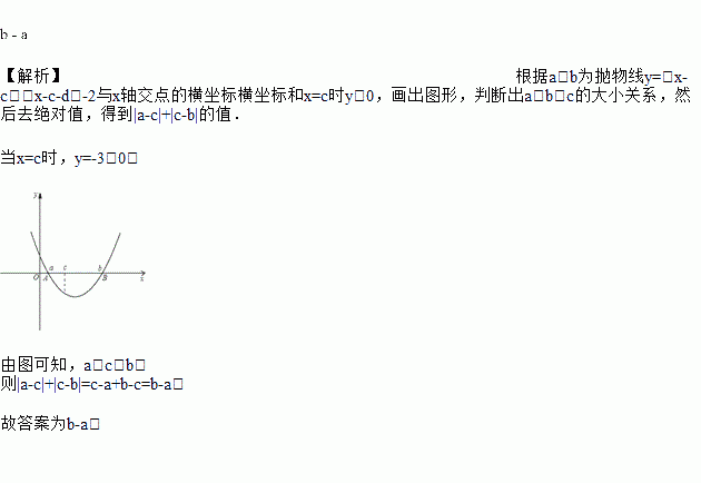 已知a、b为y关于x的二次函数y=(x-c)(x-c-1)-3的图象与x轴两个交点的横坐标,则|a-c|+|c-b|的值为___________