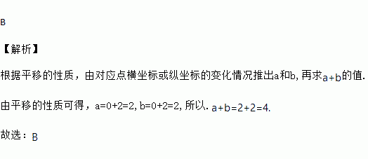 如图,A、B的坐标为(2,0),(0,1),若将线段AB平移至A1B1,则a+b的值为( )