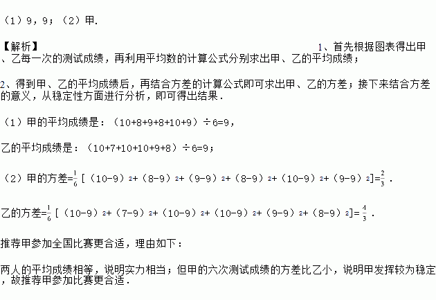 (2)结合平均水平与发挥稳定性你认为推荐谁参加比赛更适合,请说明理由.