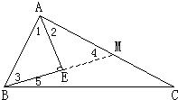 分析:延长BE交AC于M,利用三角形内角和定理,得出∠3=∠4,AB=AM,∴AC-AB=AC-AM=CM.