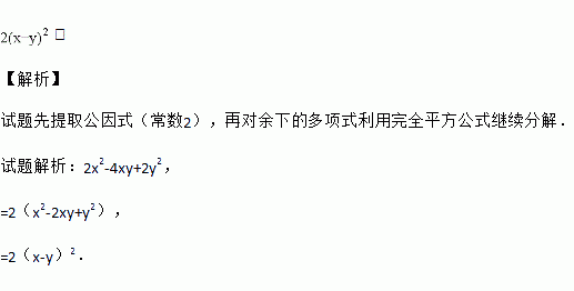 分解因式:2x2﹣4xy+2y2=______________.