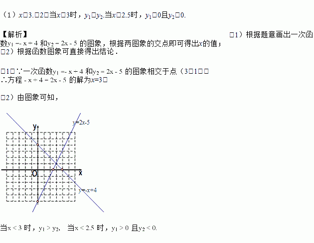 在如图所示的平面直角坐标系内画一次函数y1=-x+4和y2=2x-5的图象,根据图象写出: