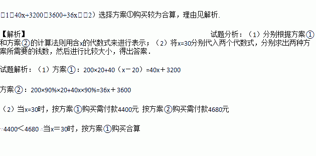 (2)若x=30,通过计算说明此时按哪种方案购买较为合算?