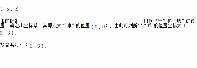 如图,在象棋盘上建立平面直角坐标系,使“马”位于点(2,2),“炮”位于点(-1,2),写出“兵”所在位置的坐标_______________.