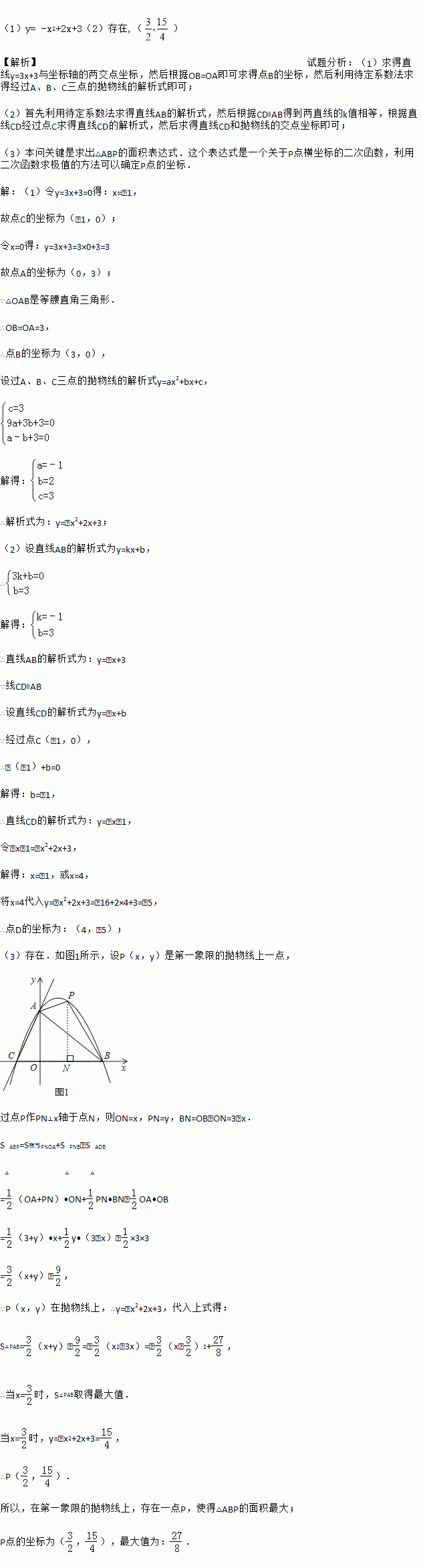 (2)若P点是抛物线上的动点,且在第一象限,那么△PAB是否有最大面积?若有,求出此时P点的坐标和△PAB的最大面积;若没有,请说明理由.