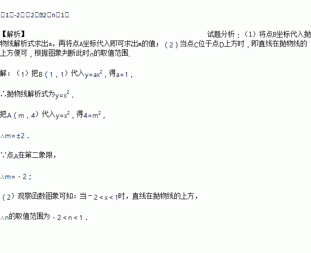 如图,直线L1:y=bx+c与抛物线L2:y=ax2的两个交点坐标分别为A(m,4),B(1,1).