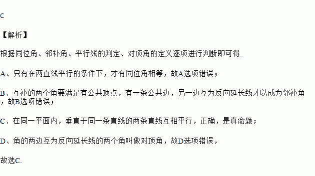 C. 在同一平面内,垂直于同一条直线的两条直线互相平行