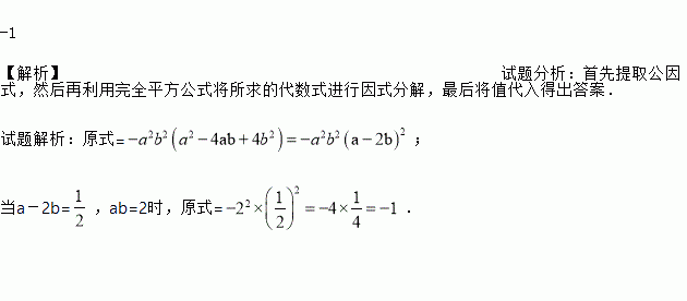 已知a-2b=,ab=2,求-a4b2+4a3b3-4a2b4的值.