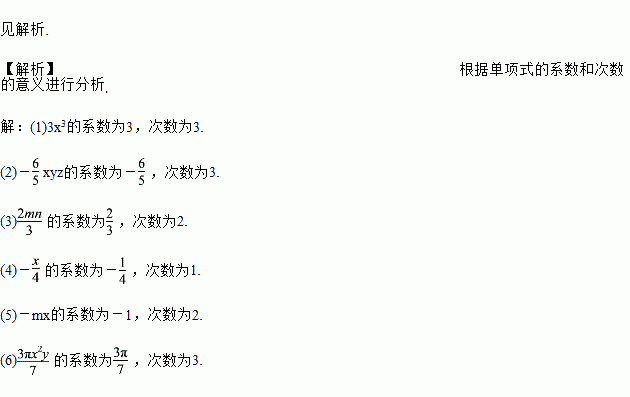 指出下列各单项式的系数和次数.
