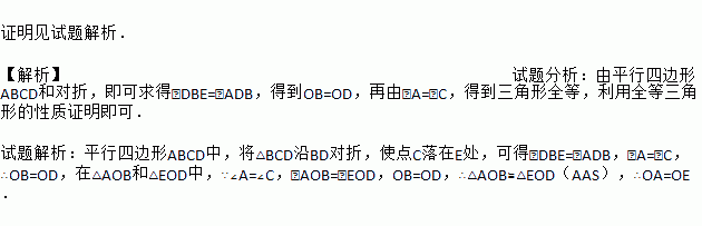 在平行四边形ABCD中,将△BCD沿BD翻折,使点C落在点E处,BE和AD相交于点O,求证:OA=OE.