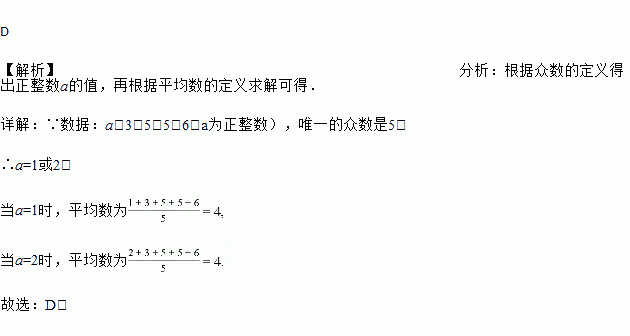 一组从小到大排列的数据:a,3,5,5,6,(a为正整数),唯一的众数是5,则该组数据的平均数是( )