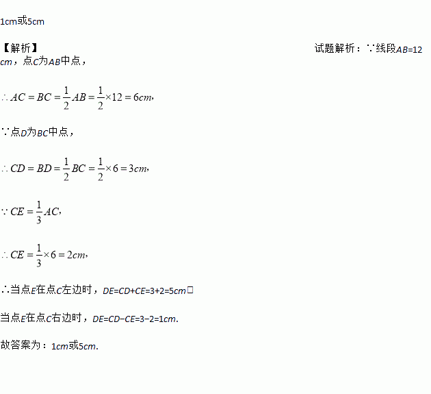 已知线段,点C为AB中点,点D为BC中点,在线段上取点,使,求线段DE的长为 .