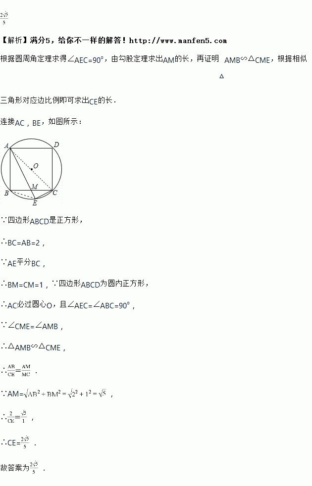 如图,正方形内接于,,弦平分交于,连接,则的长为________.