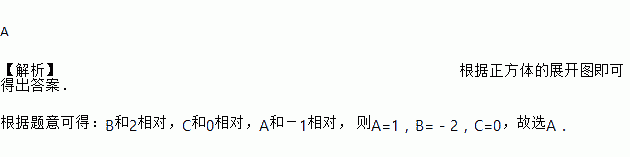 如图是一个正方体纸盒的展开图,若在其中的三个正方形A、B、C中分别填上适当的数,使该展开图折成正方体后相对的面上的两个数互为相反数,则填入正方形A的数为( )
