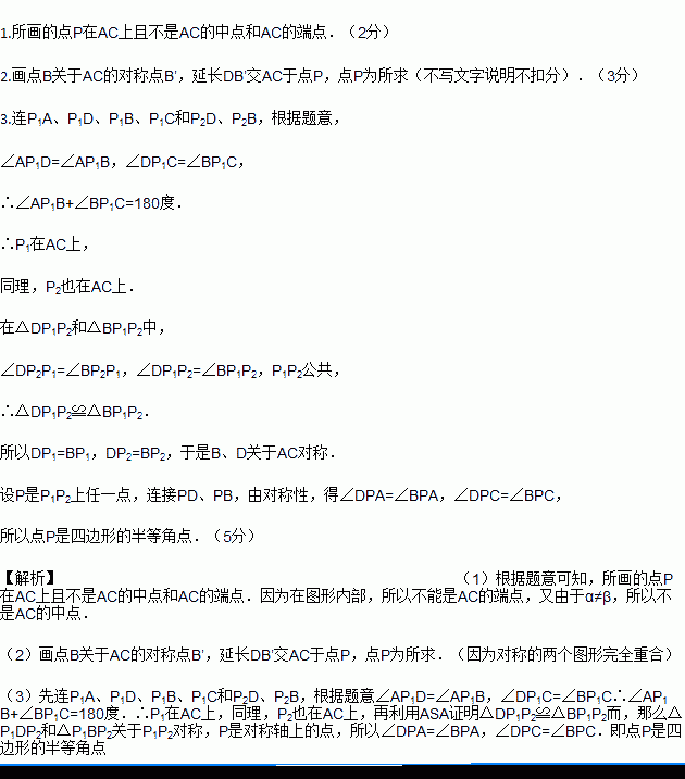 1.在图(3)正方形ABCD内画一个半等角点P,且满足α≠β;