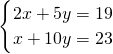 某班级组织有奖知识竞赛,派小明和小亮去超市购买某品牌的钢笔和笔记本作为奖品.若购买钢笔2支,笔记本5本,需要19元;若购买钢笔1支,笔记本10本,需要23元.