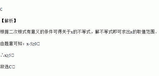 A. x≥0 B. x≠5 C. x≥5 D. x>5