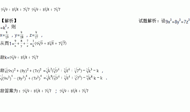 设实数x,y,z适合9x3=8y3=7z3,,则=__________,