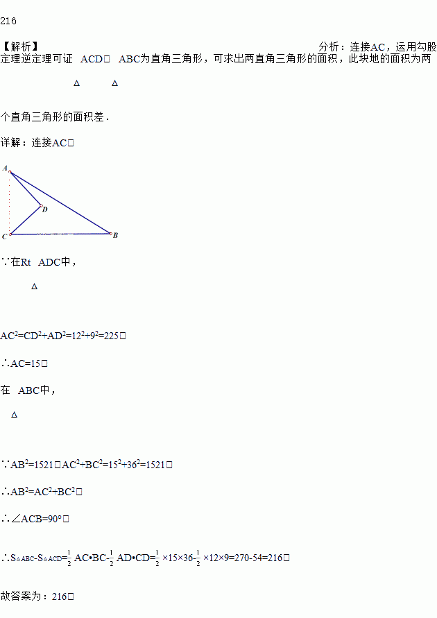 如图所示的一块土地,,,,,,求这块土地的面积.