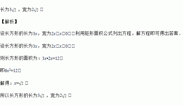 若一个长方形的长与宽之比为3:2,长方形的面积为12,求长方形的长和宽分别是多少.