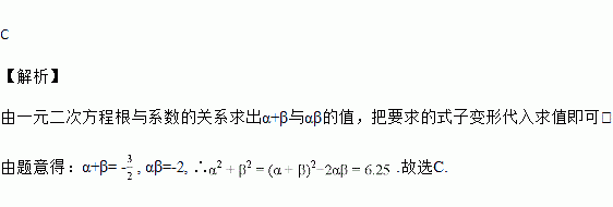 如果是α、β是方程2x2+3x=4的两个根,则α2+β2的值为( )