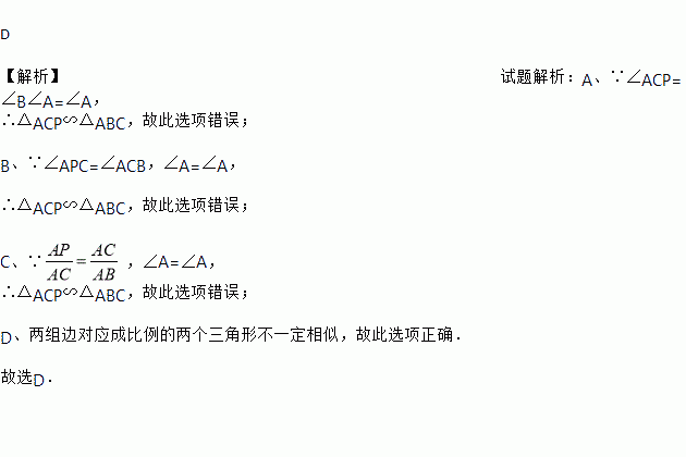 A. ∠ACP=∠B B. ∠APC=∠ACB