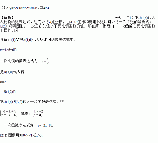 (m≠0)的图象在第一象限内交于A(1,6),B(3,n)两点.
