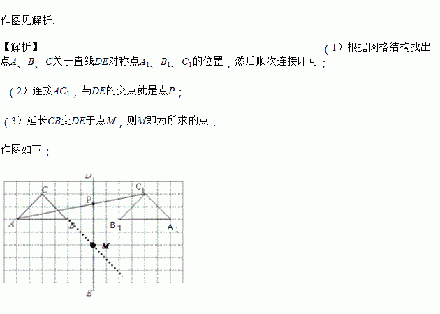 (1)画出格点△ABC(顶点均在格点上)关于直线DE对称的△A1B1C1;