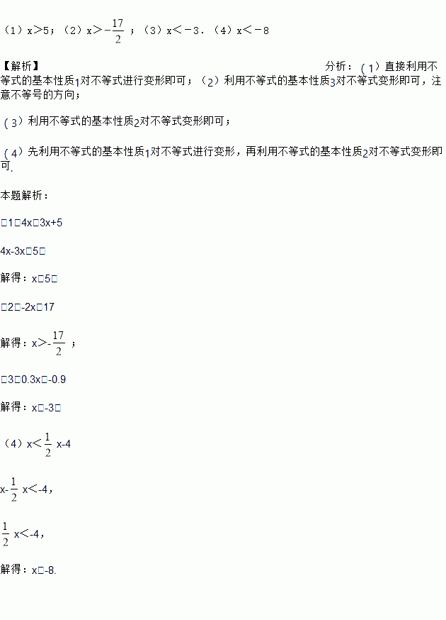 根据不等式的基本性质,把下列不等式化成“x>a”或“x<a”的形式:
