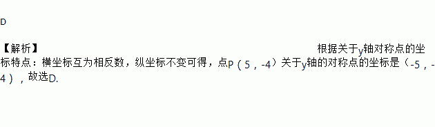 点P(5,﹣4)关于y轴对称点是( )