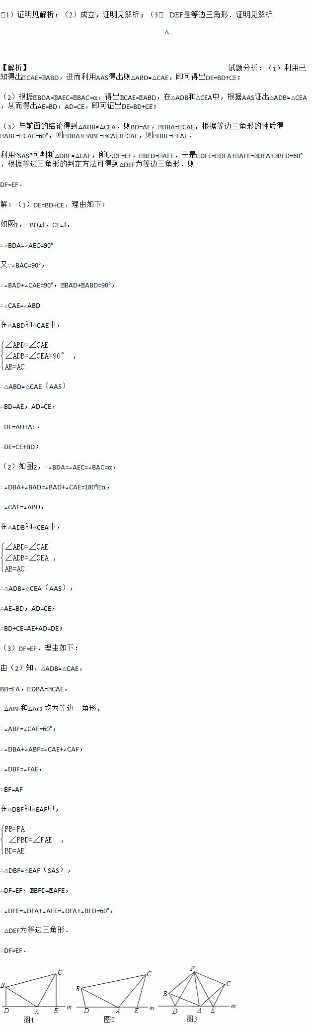 (3)拓展与应用:如图3,D、E是D、A、E三点所在直线m上的两动点(D、A、E三点