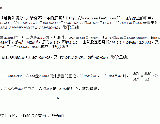 ①AM=AD+MC;②AM=DE+BM;③DE2=AD•CM;④点N为△ABM的外心.其中正确的个数为( )