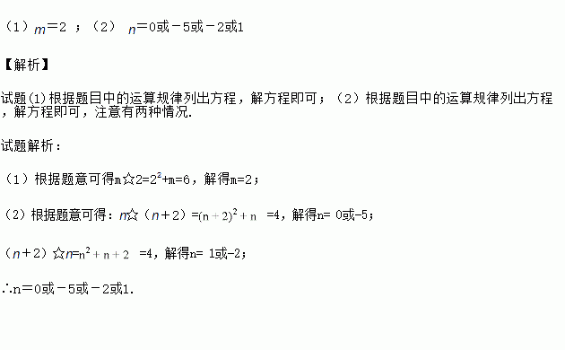 (1) 已知m☆2的结果是6,则m的值是多少?