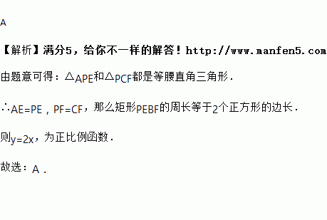 已知:如图,点P是正方形ABCD的对角线AC上的一个动点(A、C除外),作PE⊥AB于点E,作PF⊥BC于点F,设正方形ABCD的边长为x,矩形PEBF的周长为y,在下列图象中,大致表示y与x之间的函数关系的是( )