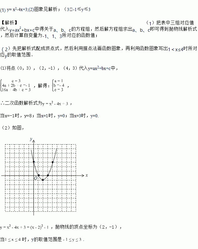 (2)填齐表格中空白处的对应值并利用上表,用五点作图法,画出二次函数y=ax2+bx+c的图象.(不必重新列表)