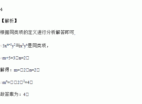 3xm+5y2与x3yn是同类项,则mn的值是_____.