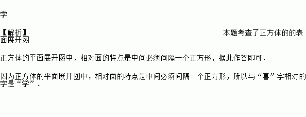 如图,这是一个正方开体的展开图,则“喜”代表的面所相对的面的号码是 .