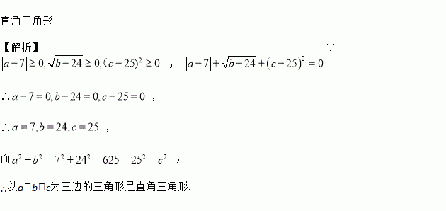 若|a﹣7|++(c﹣25)2=0,则以a、b、c为三边的三角形的形状是_____.