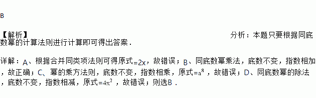 A. 5x﹣3x=2 B. x4•x=x5 C. (﹣a2)4=a6 D. 2x3÷x=4x4