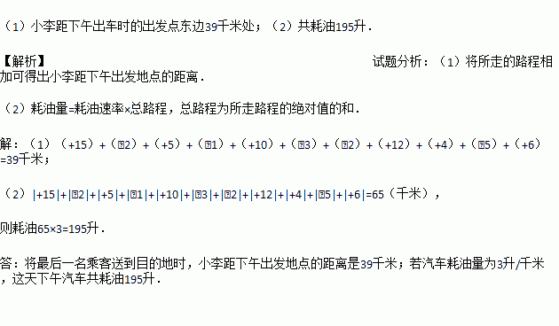 (1)将最后一名乘客送到目的地时,小李距下午出车时的出发点多远?