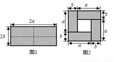 如图1,是一个长为2a宽为2b(a>b的长方形,用剪刀沿长方形的两条对角轴剪开,把它分成四个全等的小长方形,然后按图2拼成一个新的正方形,则中间空白部分的面积是( )