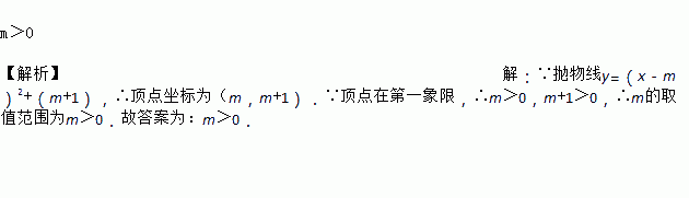若抛物线y=(x-m) +(m+1)的顶点在第一象限,则m的取值范围为________.