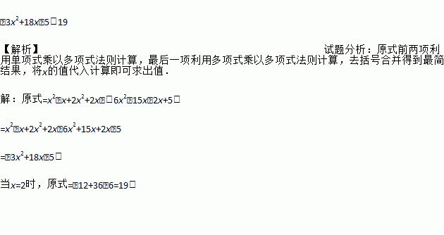 先化简,再求值:x(x﹣1)+2x(x+1)﹣(3x﹣1)(2x﹣5),其中x=2.