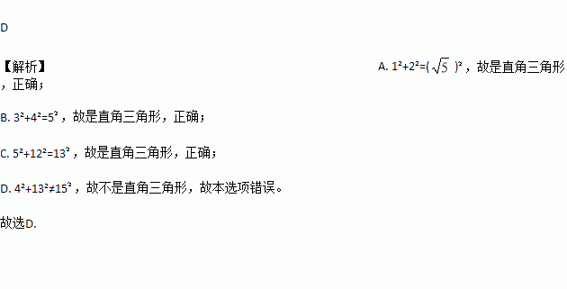 下列四组数中不能构成直角三角形三边的一组是( )