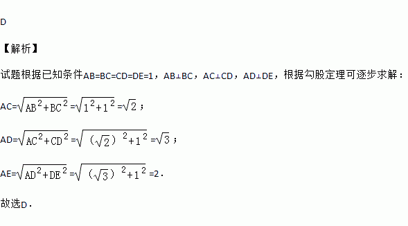 如图,AB=BC=CD=DE=1,AB⊥BC,AC⊥CD,AD⊥DE,则AE=( )