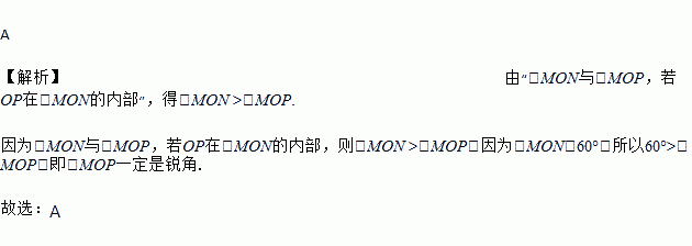 已知∠MON与∠MOP,若OP在∠MON的内部,且∠MON=60°,则∠MOP( )