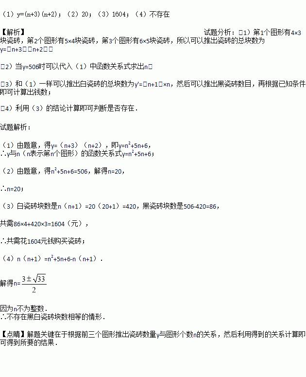 (4)否存在黑瓷砖与白瓷砖块数相等的情形?请通过计算加以说明