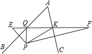 如图,点P为∠BAC内的一点,点E、F分别是点P关于AB、AC的对称点,若EF=2013cm.则△QPK的周长是__________.