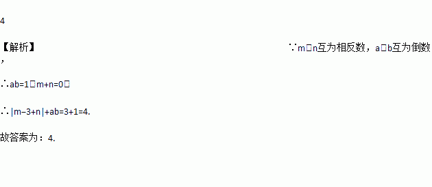 若m、n互为相反数,a、b互为倒数,则+ab=___________。